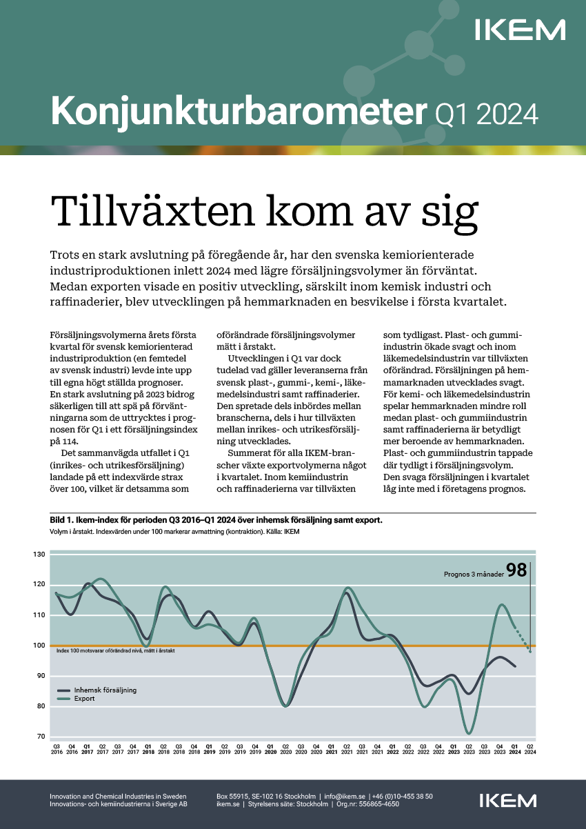 – Förutsättningarna i början av året har inte resulterat i den tillväxt industrin hoppades på. Vi ser en tydlig avmattning i efterfrågan, vilket speglas i företagens nuvarande försäljningsvolymer, säger Carl Eckerdal, chefekonom på IKEM.