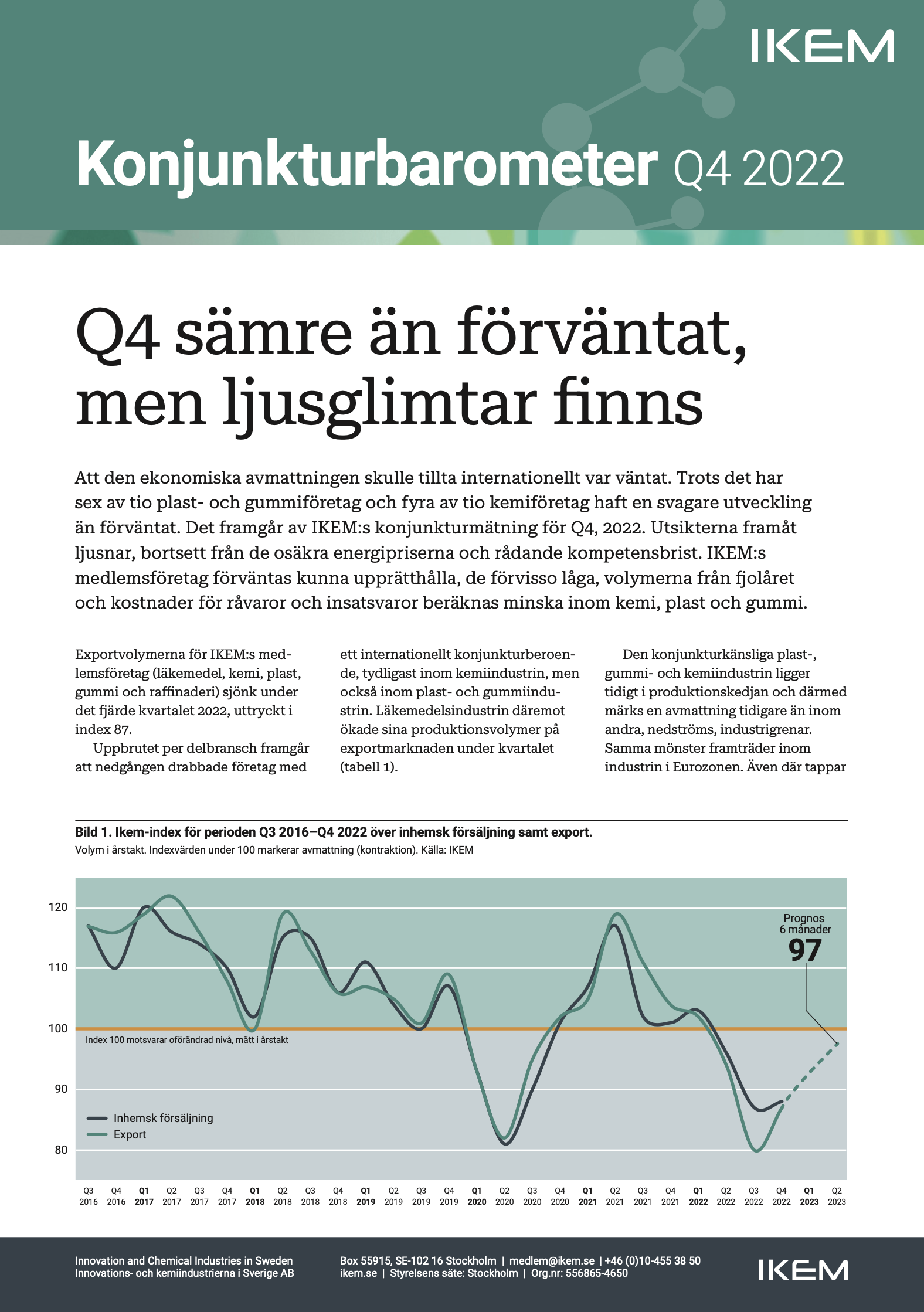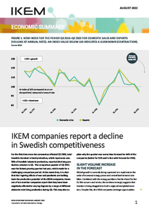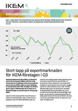 – De ekonomiska och energirelaterade utmaningarna i Tyskland, vår största handelspartner, har haft en direkt påverkan på oss. Tysklands energikris skapar oro i hela tillverkningsindustrin. Denna osäkerhet speglas i de avmattade försäljningsvolymerna, särskilt på exportmarknaden, säger Carl Eckerdal, chefekonom på IKEM.